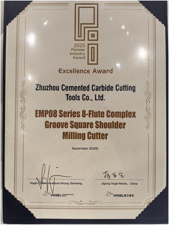 展會期間,一則喜訊為ZCCCT的“漢諾威之旅”再添光彩——ZCCCTEMP08系列銑刀成功斬獲“PI Award(弗格出海先鋒獎)”!這一獎項旨在表彰在全球市場中展現(xiàn)出創(chuàng)新力與競爭力的企業(yè)及產品,EMP08系列銑刀憑借優(yōu)異的切削性能、廣泛的適用性,以及ZCCCT在海外市場的深耕成果,最終從眾多競品中脫穎而出,成為中國刀具品牌的“獲獎代表”。
